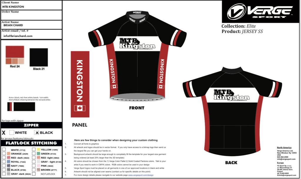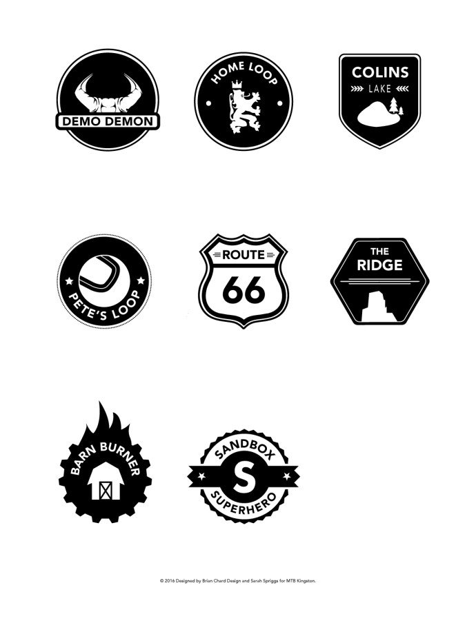 Brian Chard Design has worked on a few projects for MTB Kingston, a local mountain bike club. Brian Chard designed their cycling team jersey and cycling short kit and created the badges for their rewards program. MTB Kingston that has grown to over 1000 members in the last 10 years, and the badge designs were part of a program for youth to improve their skills.  The badges made excellent merchandising graphics featured on t-shirts and stickers, and the youth loved to collect them and put stickers on their helmets and bikes. Other projects completed with the club include athlete photography and race event photography.